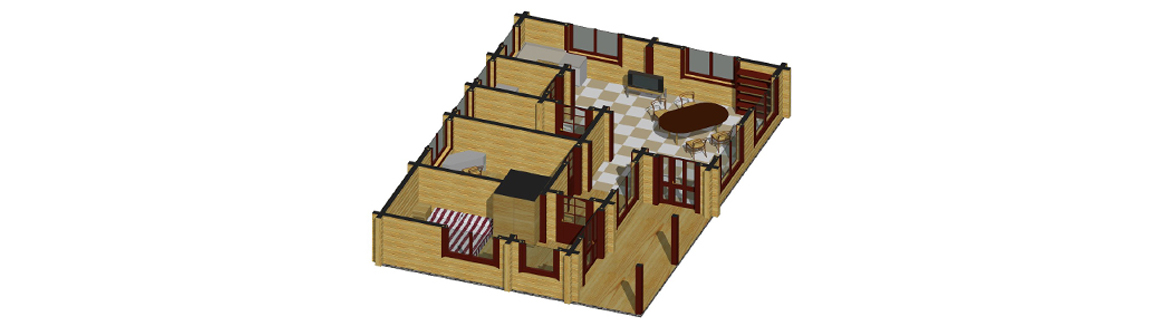 - Se compone de toda la madera necesaria, estructura externa, tabiques internos, suelos con aislamiento, tejado con aislamiento y terminación en teja. Pre-instalación eléctrica y de fontanería.